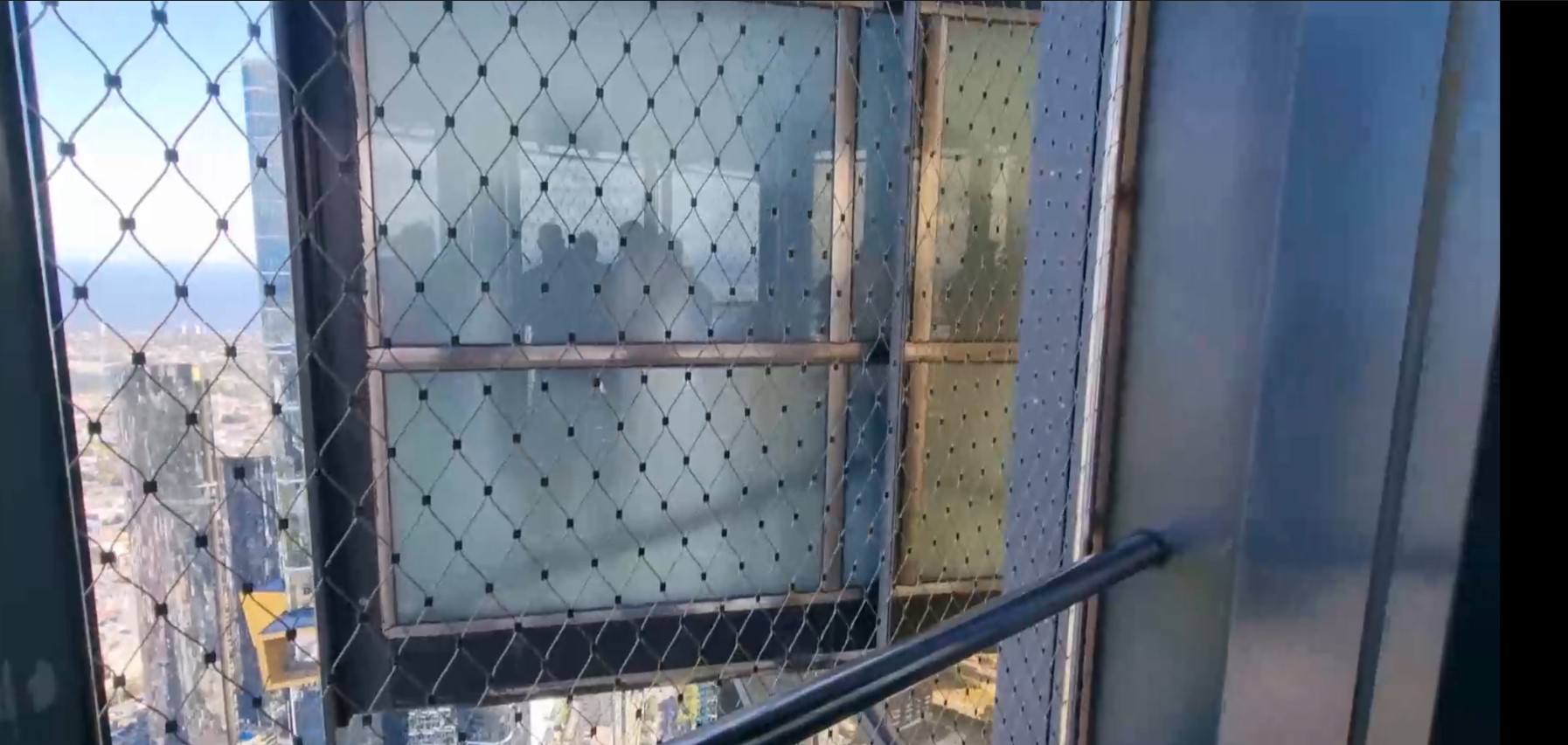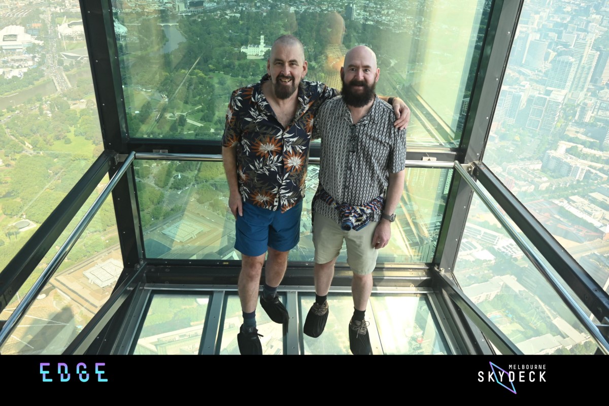 A later start this morning and decided to take a ferry along the bay to St Kilda, a suburb of Melbourne. We booked the tickets online before leaving the hotel because we didn’t want to risk there being no room for us. Did note that the ferry had been cancelled the previous day due to the rough water conditions (didn’t tell John that!). Short walk to get the tram to take us to Port Melbourne. We were expecting to see something like the ferry to Aran. The ferry was due to depart at 11.30 , but there was nothing there. On time a small boat turned up crewed by the captain, his dog and his mate. We were the only passengers on board. We sailed out to Williamstowns , getting good views of the Melbourne skyline. Stopped here for 10 minutes (lovely fish shop with oysters and lobsters) and two more people got on board. Then a slightly longer trip to St Kilda with slightly rougher water. St Kilda is a lovely seaside area with a Victorian pier which is being redeveloped and a lot of arts venues and a funfair. We walked along the esplanade and had time for lunch (fish and chips (with head attached) and avocado salad and potato wedges). Then time to take the reverse ferry journey back to Melbourne. The rest of the afternoon took us to the Eureka Tower, the 2nd tallest building in the southern hemisphere. A lift rapidly took us up to the 88th floor and the observation deck for clear views over the city, including the Australian Open tennis. The highlight was experiencing “the Edge”. This is a glass cube with a glass floor. When we entered the glass was opaque. Slowly the cube was propelled 3 metres out from the side of the building and the glass cleared to give clear views of the ground 88 floors beneath us.