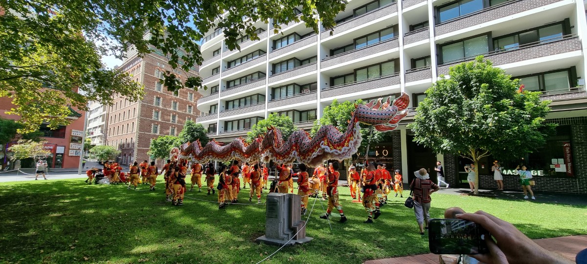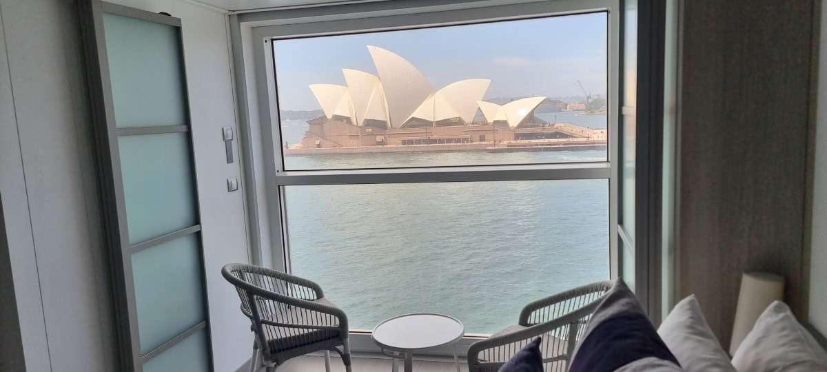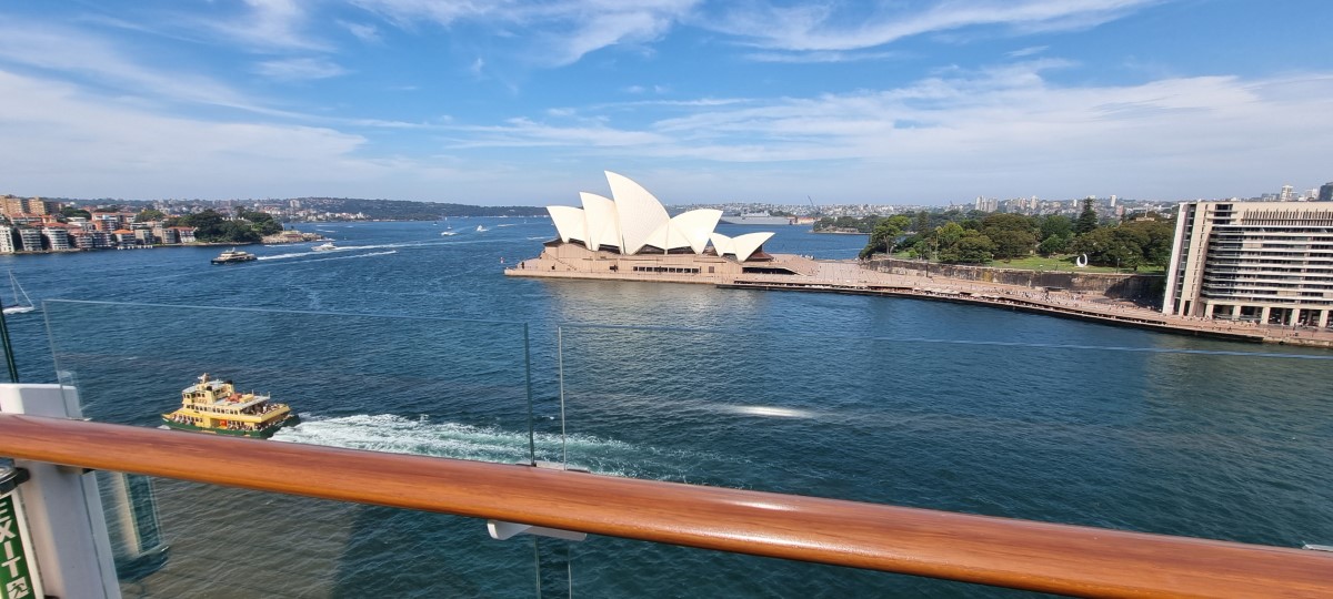 Another hot and sunny morning. We had a couple of hours to fill in between checking out of the hotel and going to the ship. So we decided to leave our bags at the hotel and spend our time visiting the nearby Chinese Gardens. On the way we stopped to see people practising for the forthcoming new year, a very colourful dragon. The gardens were larger than we expected, very beautiful and peaceful. The water was full of large and multicoloured Koi Carp. We got a taxi to the cruise terminal and very quickly we were through all the formalities and onboard our ship. The view from our stateroom is the Sydney Opera House. We will sail to New Zealand later this evening.