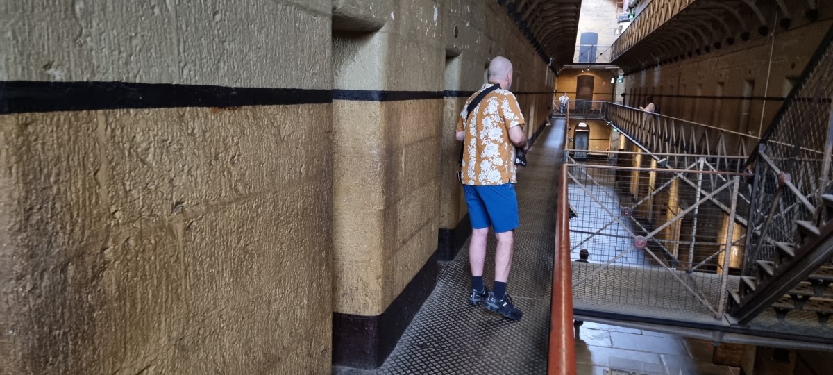 Woke up at about 6.30 and turned on the news to hear severe weather warnings for the area we were in and an approaching tropical cyclone for the North where we will be later in the week. We saw the first drops of rain on the windows of our room and watched the water bouncing off the paved area outside while we had breakfast, not the best start to the holiday. We wanted to have a leisurely day today so went in search of a city bus tour which we eventually found that had been cancelled since the outbreak of Covid. However, there was an alternative city tour on a historic tram which we used to get our bearings round the city. Our first stop was to visit the old Melbourne gaol, (jail) where the cells told the stories of some of the men and women who had been held there, and in many cases executed, including Ned Kelly the famous outlaw. Some of the stories were quite heartbreaking, of people wrongly convicted and executed. And the harsh treatment and punishments the prisoners were subjected to. We saw the site of execution with the trapdoor and the last drop. We continued on the tram through the Greek and Chinese quarters of the city and stopped for lunch in a small Greek bakery full of lovely cakes and pastries. By now the sun was out and from here we continued on tram and foot through the theatre district, passed the parliament building , visited a park and St Paul’’s cathedral and saw an arts complex which we want to re-visit for a laser show if we have time later in the week.
