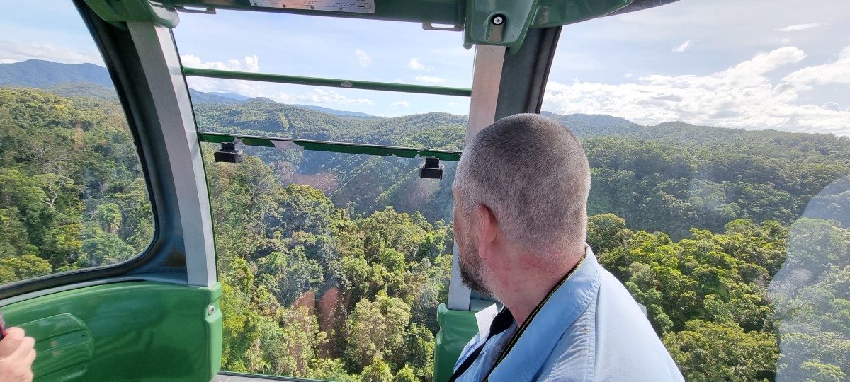 Our final visit of the day was to the Skyrail Rainforest Cableway, a 4.5 mile long cable car riding over the top of the rainforest. There were two stops along the way, one for a different view of the Barron Falls and Barron river, the other a walkway through the forest.