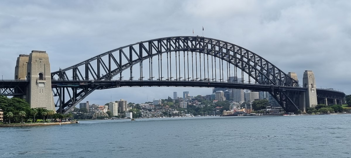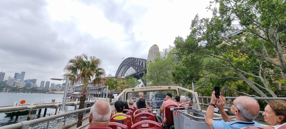 Lovely bright sunny day in Sydney. To see a bit of the city and hear of its history we had decided to take an open top bus tour. The city is full of modern buildings, but interspersed amongst them are preserved older buildings dating back to the early days of the colony. We spent a lot of time at the harbour for the views of the bridge and a walk round the opera house where we also had lunch. We watched some of the people doing the walk along the top of the bridge. Later on we moved on to the Sydney Tower for a 360 degree panoramic view of the city. We had to miss out on a nearby attraction – the world’s largest Lego store, but there’s time yet! One of the many historical buildings we saw was the Sydney Rum Hospital, named because the builders were paid in a tax free allowance of barrels of rum. Rum at the time was a practical form of currency and we were told of one of the roads which was financed in the same way. After the bus trip it was time for tea. Unfortunately we chose a restaurant next to an ice cream shop so we had to investigate and would recommend the cherry brandy ice cream. An early start tomorrow…