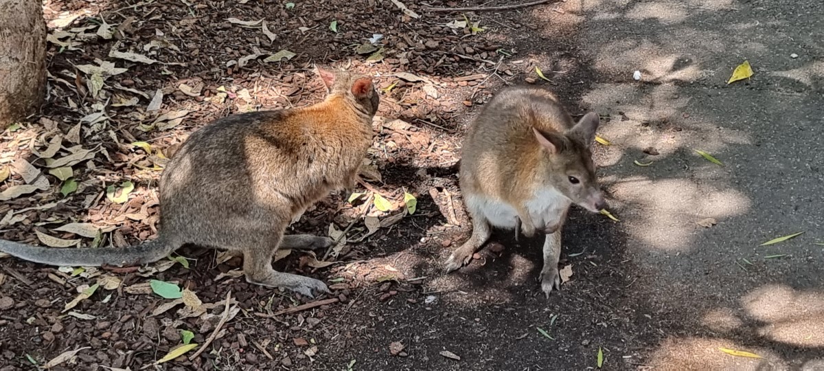 After saying goodbye to our Aboriginal guide we continued on our way with our driver , passing through small outback towns and largely agricultural land (good volcanic soil) which once was used for growing tobacco, but is now used for avocados, mangoes, papaya and macadamia nuts. We had lunch at the Skyrail coffee plantation which is Australia’s oldest. It is also the largest producer of papaya, although production is currently down by 50% as a result of the devastation caused by the storm. After lunch they described the process for coffee production. After lunch we retraced our steps seeing more kangaroos on a golf course and stopped for an afternoon visit to the Emerald Creek Ice Creamery where we were given a tub with 4 different flavours of ice cream and sorbets (Mango, papaya,tangerine and lychee).