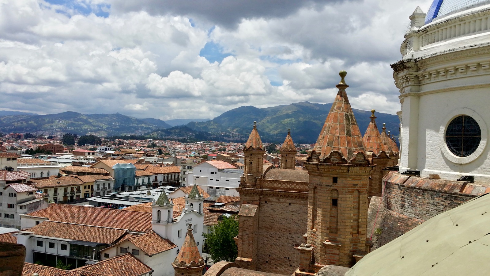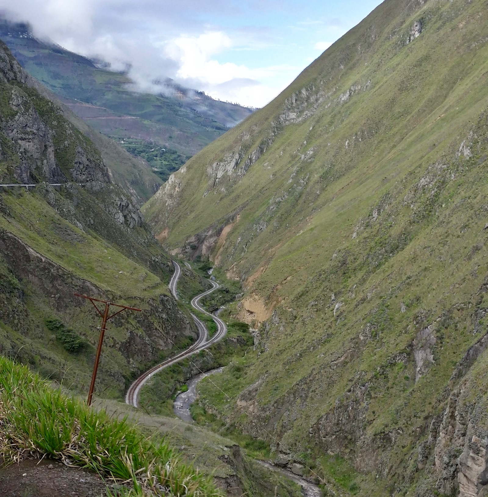 Up at 4.30 and on the road before 6am. A brief stop was made so we could see the oldest church in South America. We arrived at the station to get the 8am train on the Devil’s nose ( the name refers to the shape of the hillside we were travelling down. The first part of the journey took a winding route down the hillside and gave us some splendid views. The second half of the journey involved two switchbacks in which the train gets to the end of a line, the points behind it are changed and the train reverses on to a lower track. This zigzag motion is the only way the train can get down a steep gradient.The return journey took 40-45 minutes each way with a stop at the bottom of about an hour for coffee and cake and a display of local dancing. After this was a continuation of yesterday’s drive along twisting mountain roads passing in and out of the clouds. About lunchtime we had another stop to visit an important Inca archeological site at Ingapirca. From here a further drive took us to the city of Cuenca where we stayed for the next 2 nights. We stopped on the way in for a panoramic view of the city, it was 5pm with lovely blue skies and a temperature of 26 degrees. First impressions are that it is a beautiful place to stay. The last few photos are of the hotel and as you can see, it’s far too posh for the likes of us, but they did put us in the attic (Servant’s Quarters)