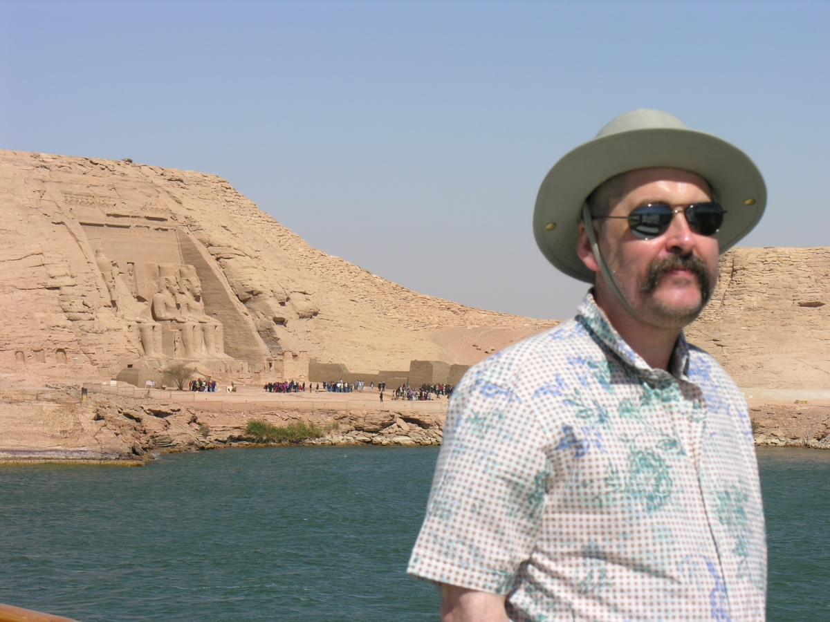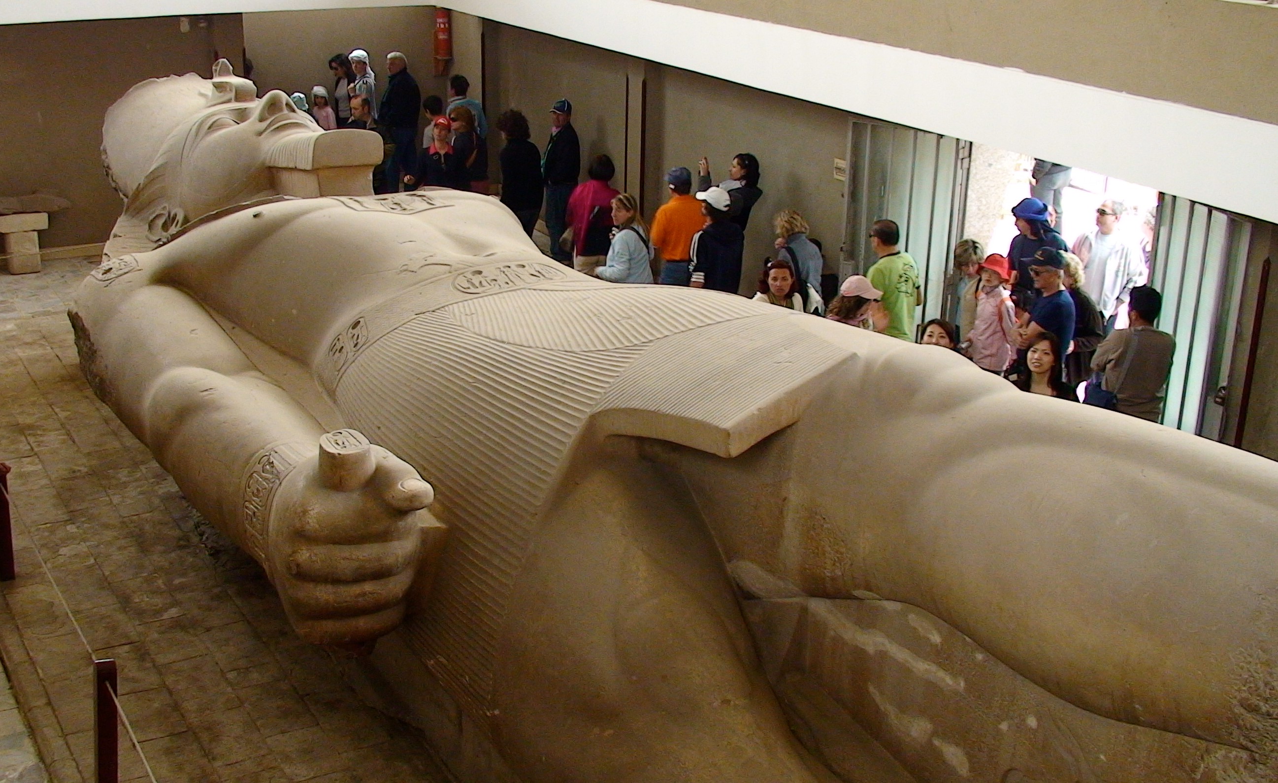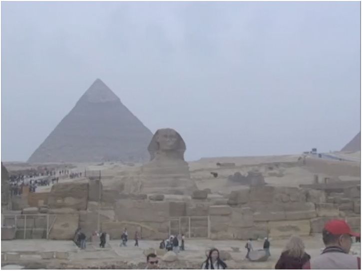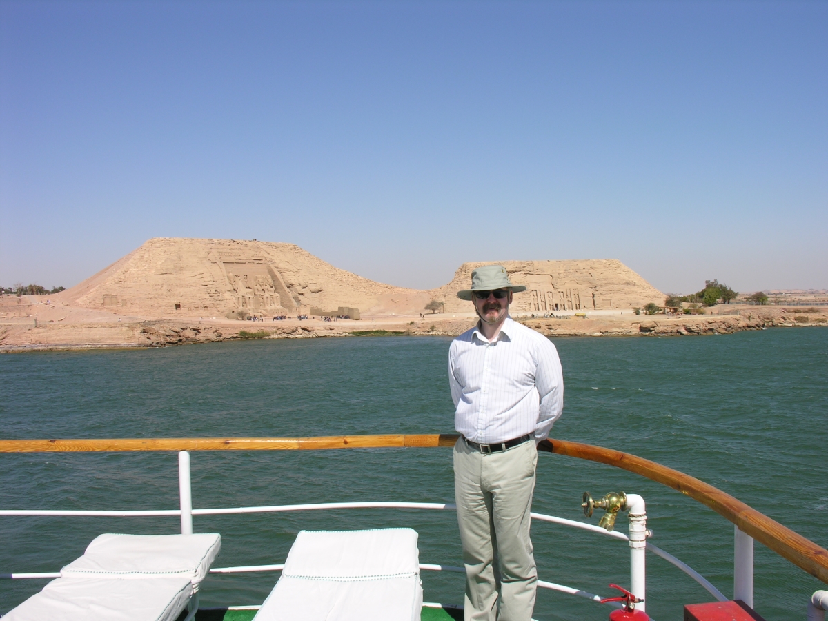 A cloudy day for our morning visit to the Giza plateau for a guided tour of the pyramids and sphinx. We declined the opportunity of a camel ride, but instead took the chance to go inside one of the pyramids. We were fortunate that the pyramid open at the time was the Great (Khufu’s) Pyramid. This was quite an experience, climbing up through the great gallery (thought to have been used as a slipway for the huge blocks of stone) and into the King’s Chamber. Until the 19th century the pyramid was the tallest building in the world and is estimated to be made up of over 2 million blocks of stone wishing on average 2.5tonnes each. We spent some time photographing the sphinx. We also visited the Solar Boat museum which holds a re-assembled full-size ancient Egyptian boat which had been discovered in pieces in a pit beside the pyramid in 1954. It took 14 years for experts to put its 1200 pieces back together using only authentic materials of wooden pegs and grass rope. Its called the Solar Boat because it resembles the images in tomb paintings of the boat in which the sun-god makes his daily trip across the sky. It is possible that the boat may actually have been used to take the body of Khufu from Memphis to his tomb at Giza. In the afternoon we took a scenic drive to Memphis, the first capital of Egypt in 3220BC. Most of Memphis was destroyed over the centuries by foreign invaders, but we saw some of the surviving pieces – the giant Alabaster Sphinx and a colossal limestone statue of Ramases II. We moved on to Saqqara to see the oldest pyramid in Egypt, the step pyramid of Djoser (Zoser). There are also tombs here of many high officials and we were able to go inside one and see the elaborate wall paintings. In the evening, we went for dinner and a short cruise in a boat on the Nile. During the evening there was entertainment in the form of dancing by whirling dervishes (very colourful) and a magician. The magician came round the tables performing close magic tricks, at one point I became alarmed because my camera had vanished from the table in front of me it was soon restored by the performer – a very impressive show!