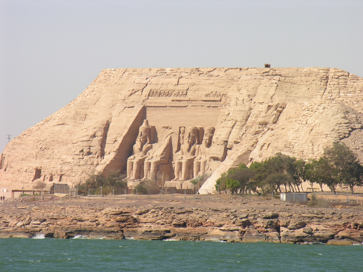 Today was the highlight of the trip so far. We had a windy morning sailing on the lake,until we started to See Abu Simbel appearing before us. As we got closer they started to play the triumphal march from the opera, Aida which seemed appropriate for the spectacular sight before us. The temple had been buried in the sands until its discovery by archeologists in the 19th century. Originally, the temple was carved out of a solid cliff in the 13 century BC, but was removed to the present site in a rescue operation in the 1960’s taking 5 years. It is dedicated to the thread of the gods,but was built to honour Ramases II and there are four massive statues of him at the entrance. There are more paintings and sculptures of Rameses inside. There is a second and smaller temple dedicated to the goddess Hathor and built by Rameses to honour his favourite wife, Nefertari. Abu Simbel is a major tourist site so we were Bogarde with traders trying to get us into their stores with cries of “Asda price” and “Cheap as Chips’ ‘. After dinner on board the boat it was a return to the temple for a dramatic sound and light show.