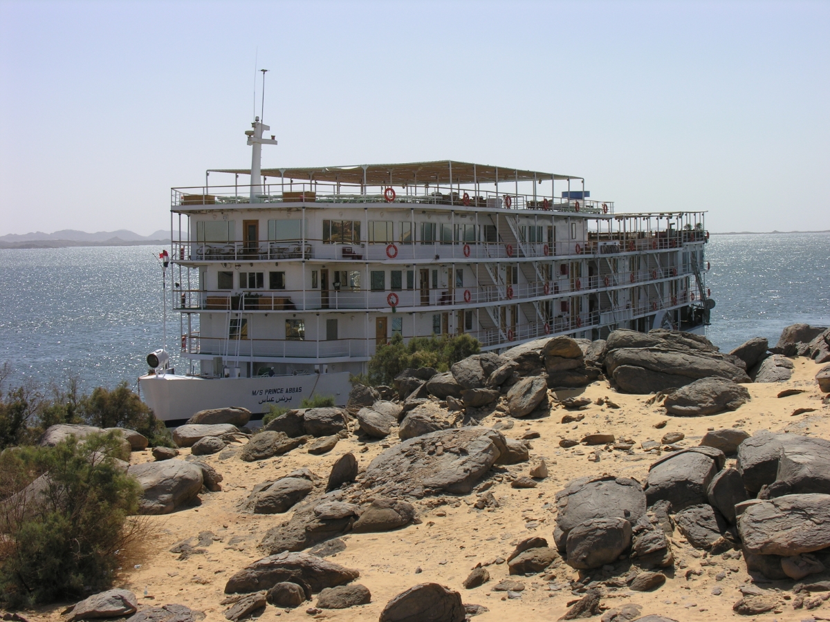 Had flown down to London the day before and spent that day In Brighton visiting the Pavillion and enjoying celebrations for the Start of the Chinese New Year. Today we flew from Gatwick airport to Aswan. A short bus ride took us to Lake Nasser, this is the largest artificial lake in the world and was created when the high Dam was constructed. The formation of the lake required the removal , stone by stone, of the various temples we would visit over the next few days. By now it was dark as we took a short walk towards the shore where we saw , lit up before us, the ship, MS Prince Abbas on which we would be staying for the next 4 nights.