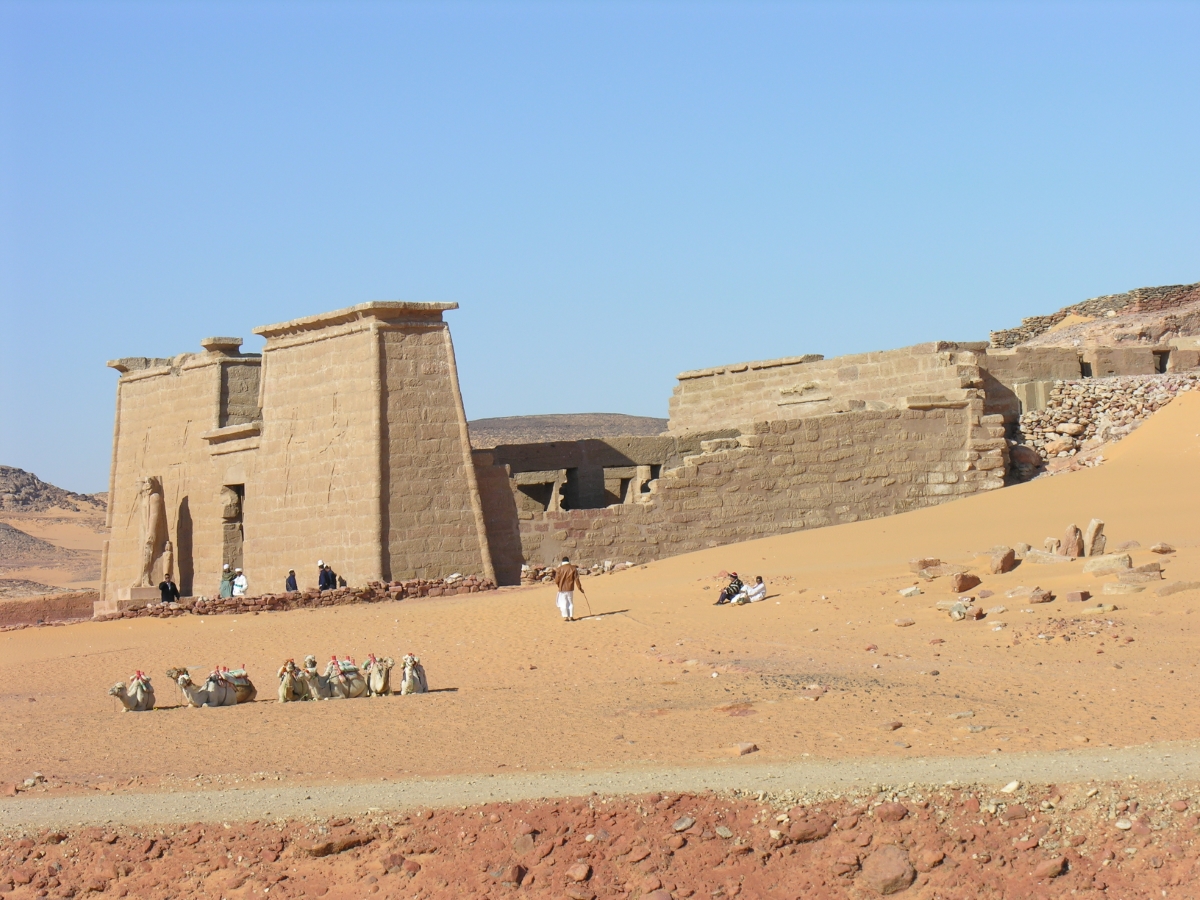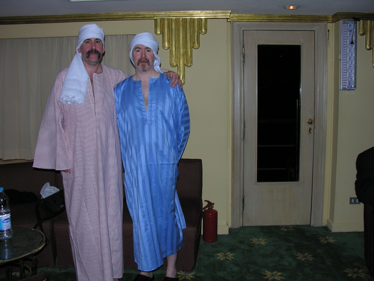 Today we visited three more temples. In reaching the first, some of our party took a short camel ride, but we decided that the might be better opportunities ahead to do this so we had a short walk to the temple of Wadi el-Sabua, again but by Ramases II. We passed through an avenue of sphinxes and saw the two imposing studs of Ramases at the entrance. Then on to the temples of Dakka and Mararakka. We saw some fine paintings and hieroglyphics. In the evening we had a party on board, we had been taken earlier to buy Egyptian clothing and taught how to tie a turban. Lots of dancing.