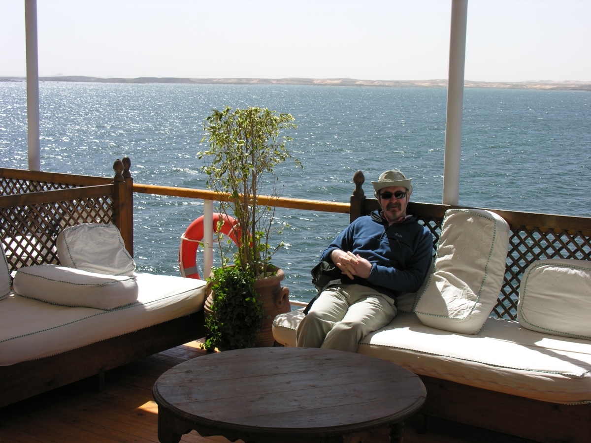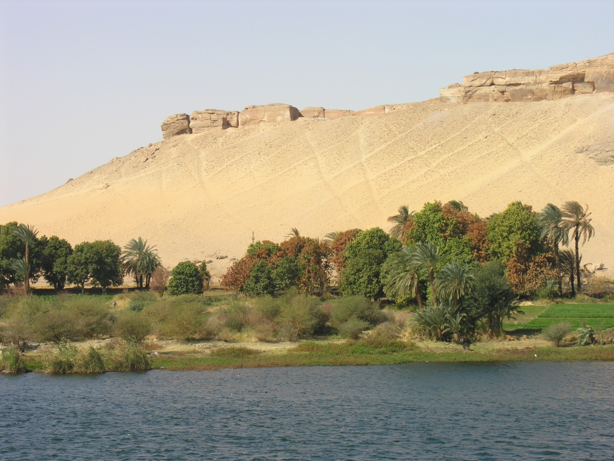 A short sail to visit the temple of Kalabsha which was built around 30BC but never completed and is dedicated to the fertility god Mandulis. It has some very good carvings on the walls. This temple was moved from its original location in a rescue operation by the Germans, and in exchange the Egyptians gifted the gates to the temple to Germany, where the now form the entrance in the. Pergamon Museum in Berlin. We also saw a smaller structure, the hemispheres of Beit el Wadi, erected by Ramases II and dedicated to Hathor and Isis (moved by a Polish archeological team) and the Chapel of Qertassi, erected to honour the goddess Isis. A lazy afternoon back on the bout watching the shore line pass by and seeing the sunset over the shore. Moored overnight at Wadi el Sebua.