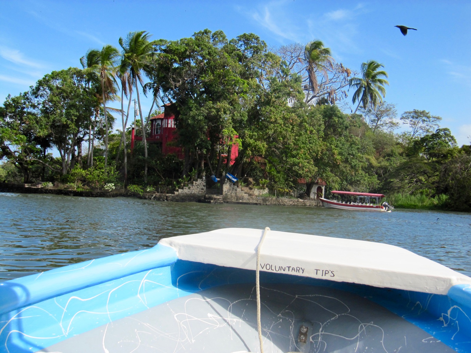 From here we visited a nearby town with an attractive church and a busy craft market. We had lunch high up overlooking a lagoon formed by water filling an old volcanic creator, and then returned to Granada for a boat trip on Lake Nicaragua to see some of the 365 islands on the lake and lots of the birds inhabiting the area (many of which are very brightly coloured).