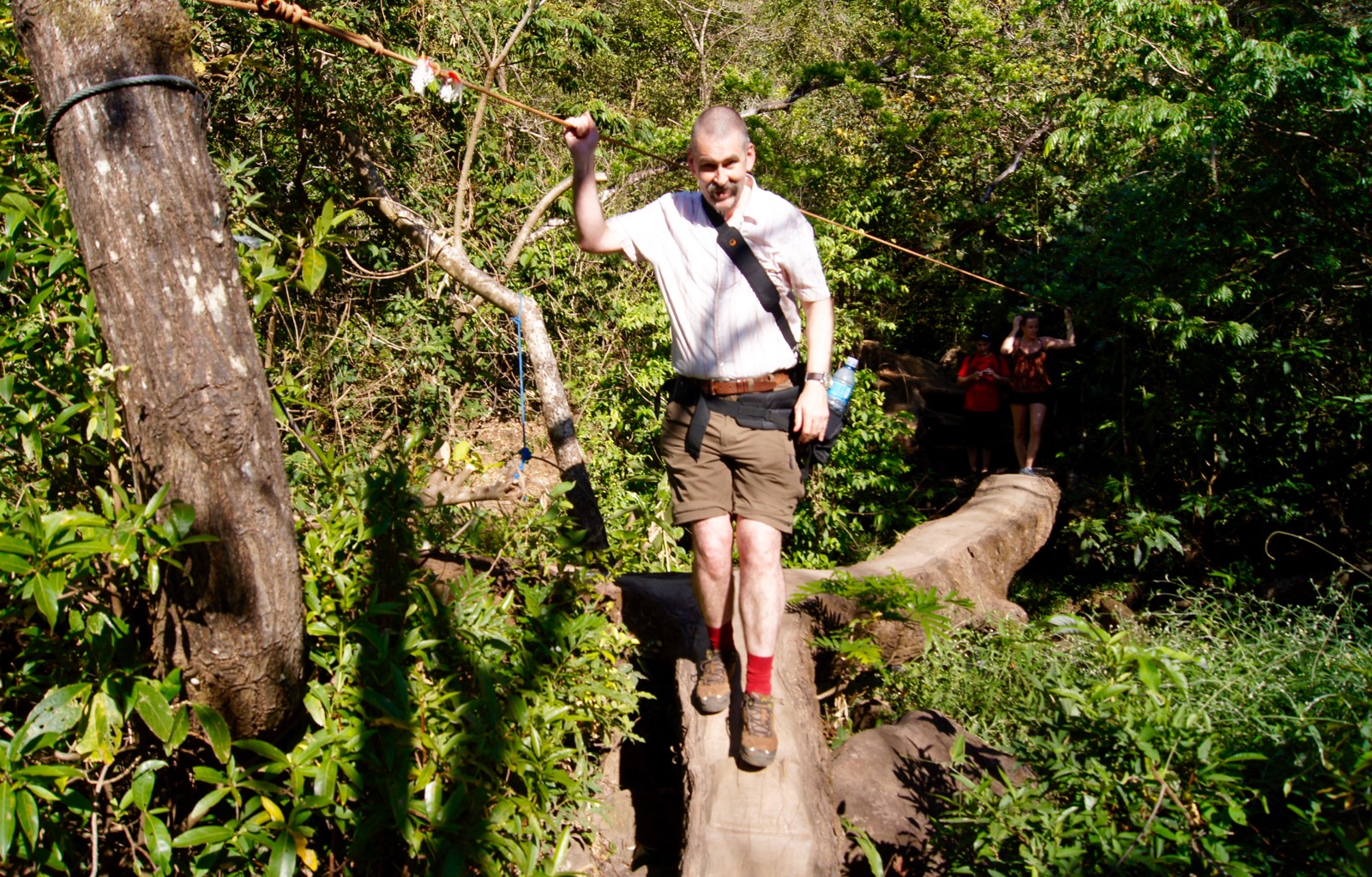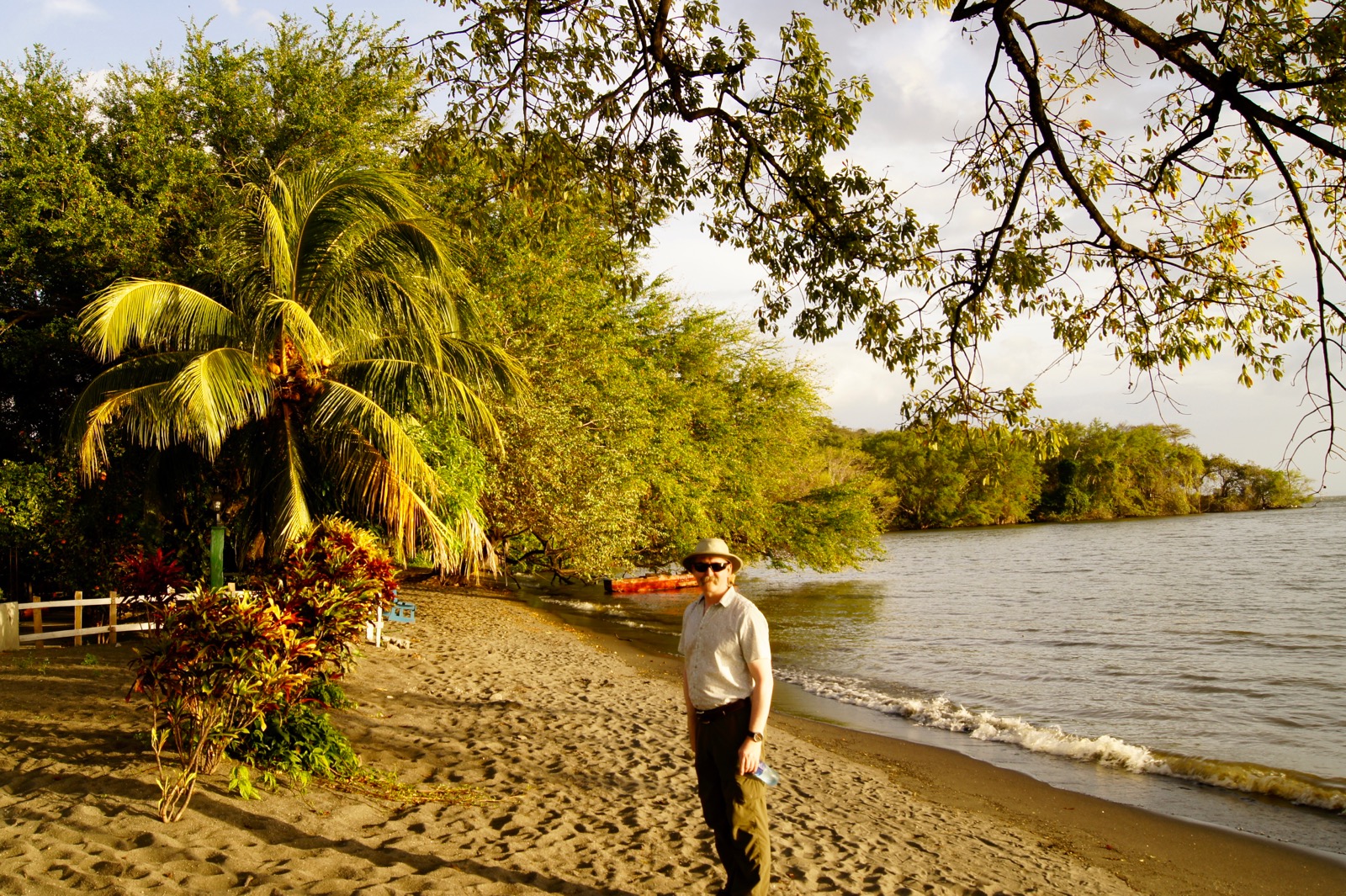 We had a quick lunch on the shore of Lake Nicaragua (more lovely fresh fish for them what likes it), one of the world’s largest freshwater lakes. We then boarded the ferry which was an old USA military landing vehicle for an hour-long crossing to Ometepe Island where we will spend tonight. This is a volcanic island with two volcanos, only one of which is still active. The crossing was very good with great views of the island (just like taking the ferry to Rothesay), quite windy but very warm and one of us has now got red arms from the sun.